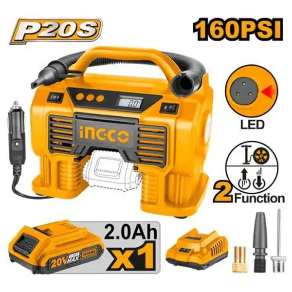 کمپرسور شارژی 20 ولت اینکو مدل CACLI2002 Inco 20V Rechargeable Compressor Model CACLI2002